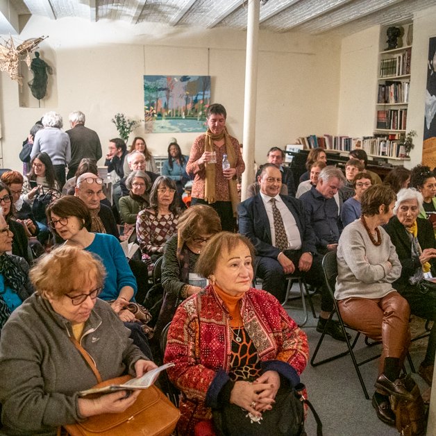 22 / 11 / 24 : Rencontre avec les artistes Nazik Armenakyan, Karén Khachaturov et Khachatur Martirosyan sur la place des arts visuels à Erevan, animée par Alain Berland, commissaire des expositions du festival, à la Librairie-Galerie Métamorphoses.